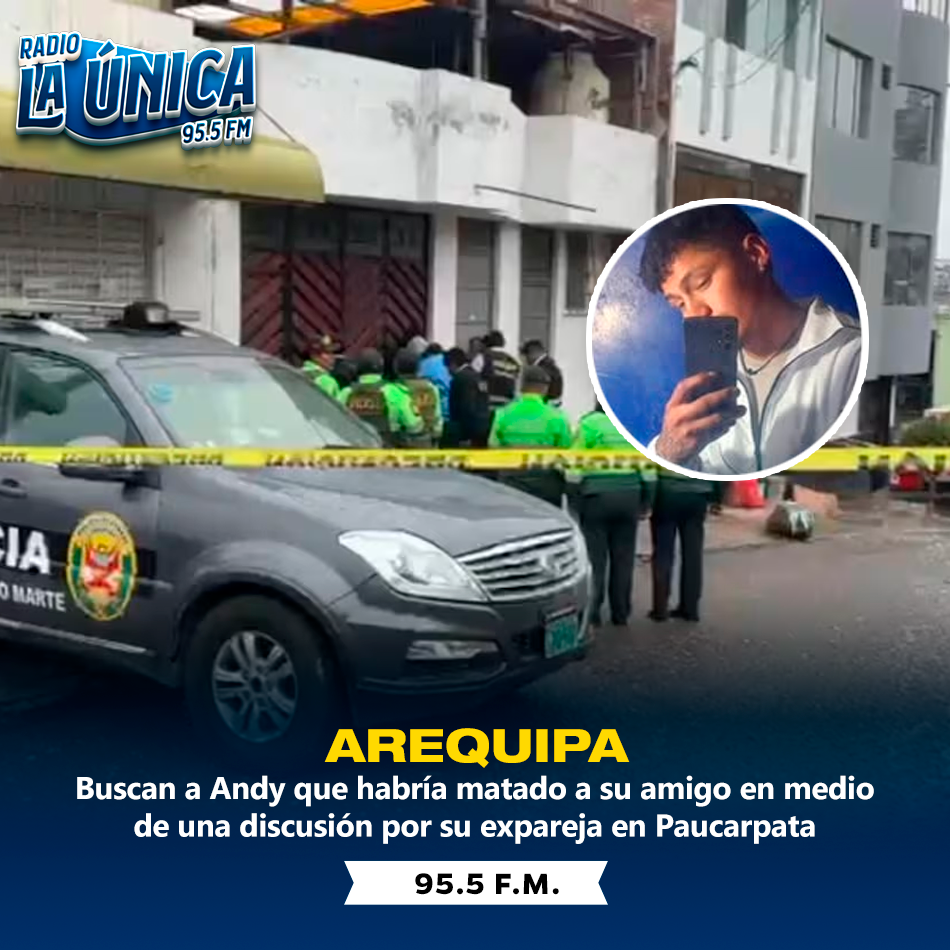 La Policía se encuentra buscando a Andy, quien es el principal sospechoso del homicidio de Fernando Paccosonco (20) quien fue apuñalado en la vía pública del distrito de Paucarpata. De acuerdo a información preliminar, Andy habría asesinado con un objeto punzocortante a su amigo en medio de una discusión por su expareja, ya que los dos se amenazaron anteriormente. Tras el ataque, el presunto agresor que contaría con antecedentes por hurto, escapó del lugar y por el momento se desconoce de su paradero.