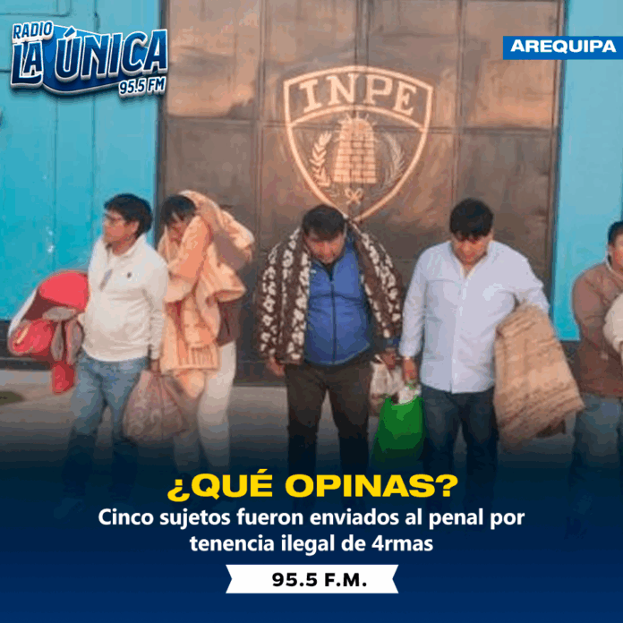 Los varones Enrique Fuentes Rivera, Martín Mamani Layme, Frank Aguilar Abarca, Denis Paredes Cordero y Henry Machaca Álvarez quienes son investigados por delito de tenencia ilegal de 4rmas, fueron enviados a nueve meses de prisión preventiva.