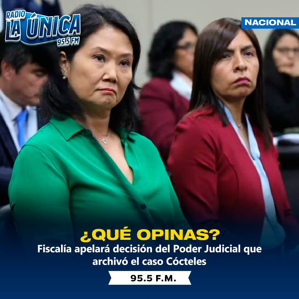 El Ministerio Público decidió presentar una apelación contra el mandato del Poder Judicial que dictaminó el archivamiento definitivo del caso Cócteles, proceso en el que se investiga a Keiko Fujimori por presuntos aportes irregulares a sus campañas presidenciales de 2011 y 2016.