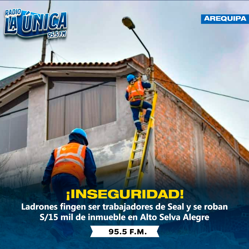 Dos delincuentes que fingieron ser trabajadores de SEAL lograron robar S/ 15 mil de una casa ubicada en la asociación Villa Ecológica en el distrito de Alto Selva Alegre. De acuerdo a la denuncia policial dos falsos técnicos llegaron a la vivienda de una madre de familia de 32 años, quien los dejo pasar a su inmueble por que le dijeron que realizarían una supuesta verificación del suministro eléctrico.