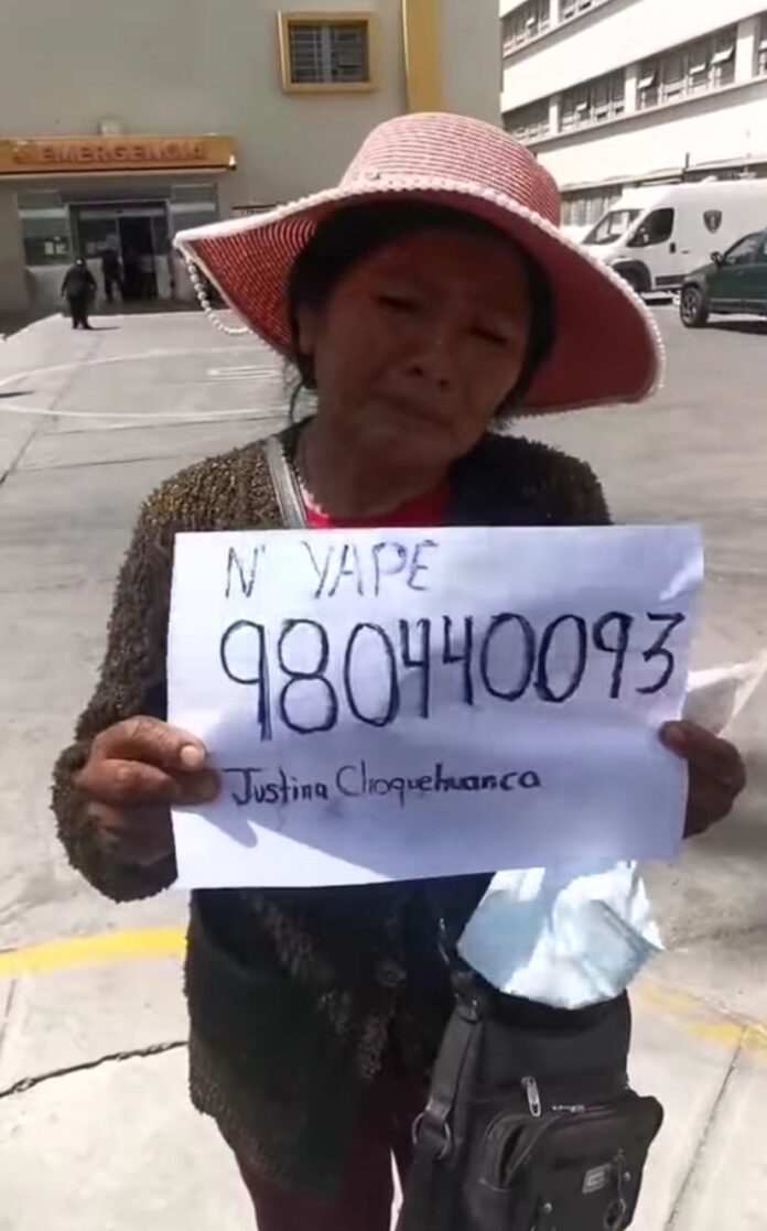 La señora Justina Choquehuanca se encuentra pidiendo apoyo a la ciudadanía arequipeña para pagar los medicamentos de su hijo de 19 años quien permanece en la Unidad de Cuidados Intensivos (UCI) en el hospital Honorio Delgado, después de sufrir un accidente de tránsito el último fin de semana en La Joya.