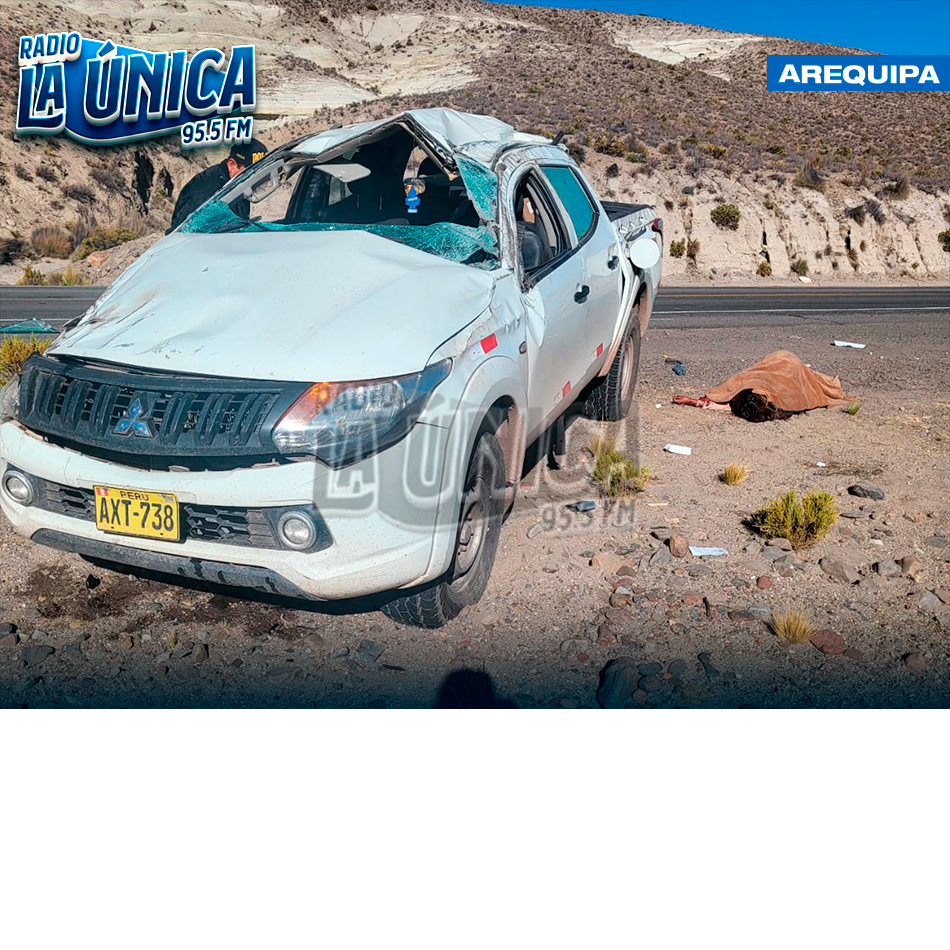 Un trágico accidente de tránsito ocurrió a las 07:40 a.m. en la vía de penetración a Chivay, en el sector de Cañahuas. De acuerdo a un informe policial la camioneta Mitsubishi blanca de placa AXT-738 se volcó y despistó a un costado de la vía.
