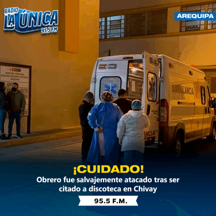 Un varón de 41 años se está debatiendo entre la vida y la mu3rte tras ser agr3dido brut4lmente en una discoteca del distrito de Chivay en la provincia de Caylloma. El agraviado identificado como Andrés Adolfo Llica Mogollón, fue encontrado horas después con graves lesiones en una chacra del sector Cachiñán y después trasladado al hospital Honorio Delgado Espinoza por que su estado es crítico. El caso será investigado como robo agravado y tentativa de homicidio.
