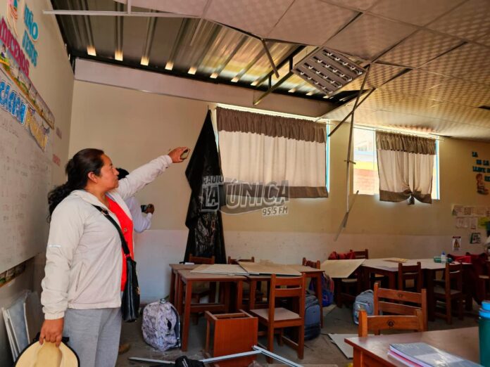 El desprendimiento del techo de un salón de clases del colegio Mi Divino Niños Jesús ubicado en Dean Valdivia Sector 12, pudo terminar en tragedia.